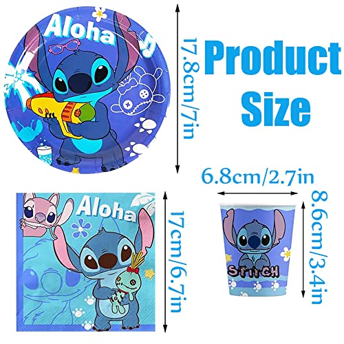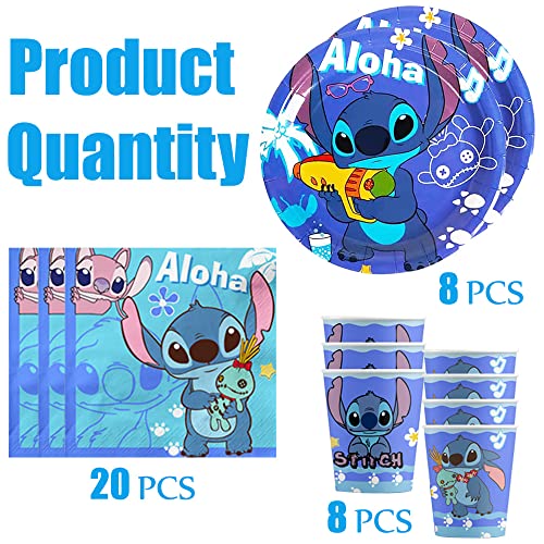 YGCHEN Stitch Stoviglie per Feste Decorazioni Compleanno Stoviglie Stitch Bicchieri Piatti Carta Tovaglioli Bambini Forniture per Feste 8 Ospiti