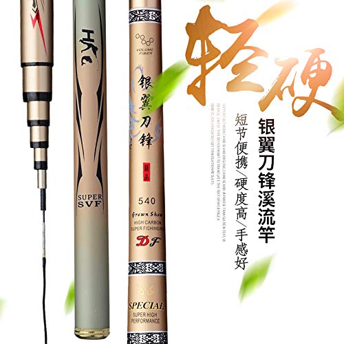 YGLONG Canna da Pesca Palo da Pesca telescopico in Fibra di Carbonio Leggero in Fibra di Carbonio Palo di Mano d'Acqua Dolce 2,7/3,6/3,9/4,5/5.4/6.3/7/8/9 / 10 m Stream Pole Canna da Pesca Surfca