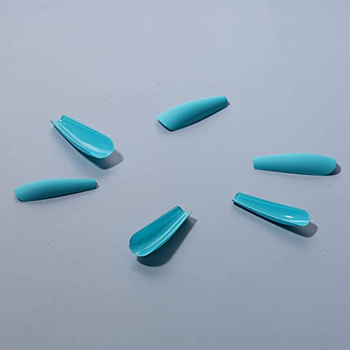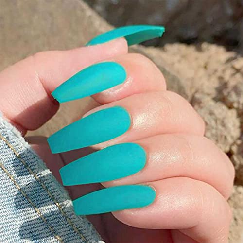 Yheakne Coffin - Unghie finte lunghe a forma di ballerina, colore verde, con clip per unghie di lusso, per donne e ragazze, 24 pezzi (verde opaco)