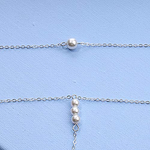 Yheakne Boho Collana con catena posteriore con perle Collana con sfondo argento Collana con catena per il corpo Catena estiva con catena posteriore da sposa Spiaggia per donne e ragazze Regali