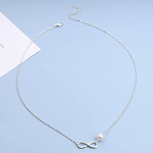 Yheakne Boho Collana girocollo di perle Infinity Collana con ciondolo di perle in argento Collana a forma di otto gioielli a catena per regali per donne e ragazze (argento)