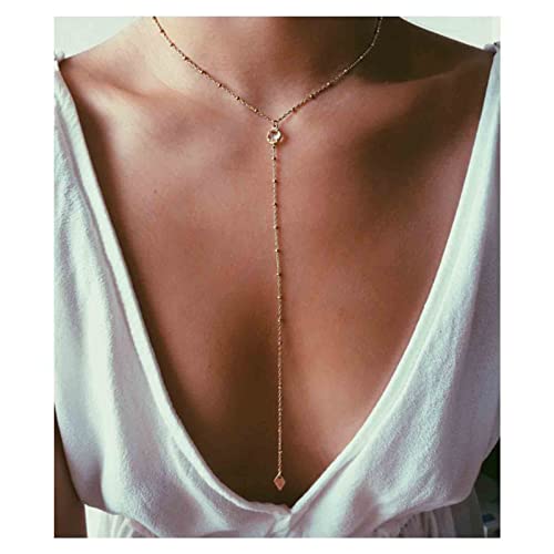 Yheakne Boho Collana lunga in oro Lariat Collana a Y in cristallo Collana a catena lunga a catena a Y Collana a rombo con geometria minimalista Gioielli per donne e ragazze