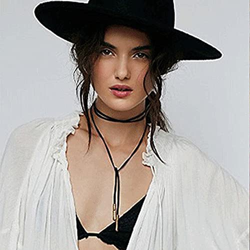 Yheakne Collana lunga in pelle a strati Collana girocollo in pelle scamosciata di velluto nero Collana con ciondolo a barra vintage Gioielli a catena per donne e ragazze (oro)