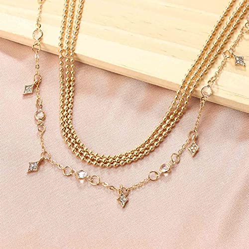 Yheakne Boho Collana Stella a strati Girocollo Oro Satellite Perla Collana Collana Vintage Cristallo Collare Collana Corta Collana Multipla Catena Gioielli per Donne e Ragazze