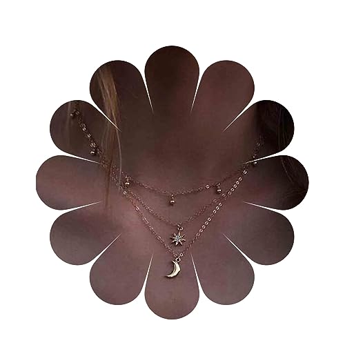 Yheakne Boho Collana con luna a strati Girocollo Collana con ciondolo a stella con strass dorati CZ Collana con catena Northstar Collana con mezzaluna vintage Gioielli per donne e ragazze