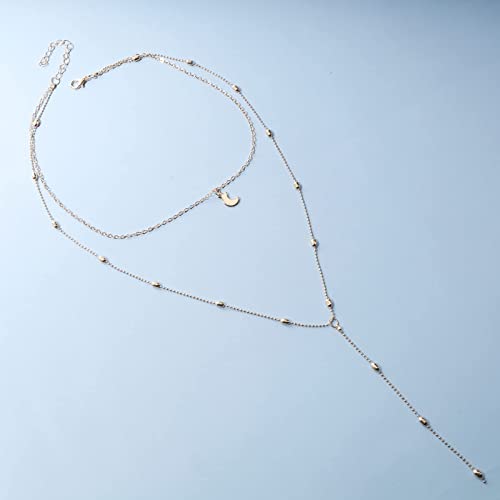 Yheakne Boho Collana con luna a strati Girocollo Collana in oro Y Lariat Collana lunga con avvolgimento satellitare Collana vintage regolabile con catena Gioielli per donne e ragazze Regali