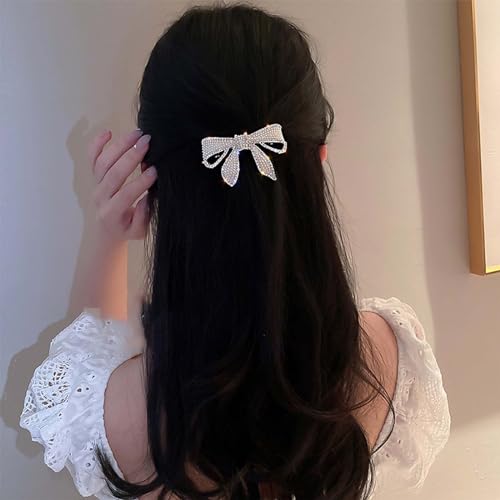 Yheakne Fermaglio per capelli con fiocco in cristallo Boho perle zirconi argento Bowknot Fermaglio per capelli con fiocco in cz Copricapo Copricapo decorativo Accessori per capelli per donne e ragazze