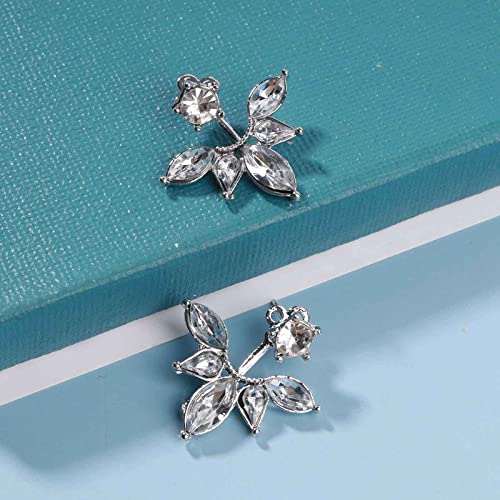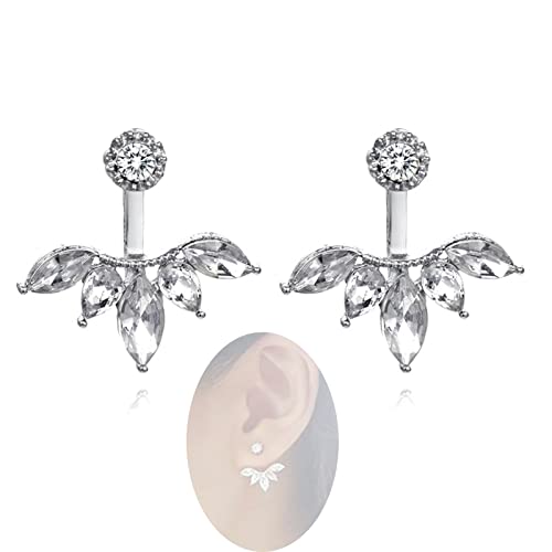 Yheakne Orecchini Boho Crystal Lotus Giacche Orecchini Argento Crystal Studs Orecchini Sparkle Strass Ear Jacket Orecchini CZ Ear Climber Orecchini Orecchini da sposa Gioielli per donne (Argento)