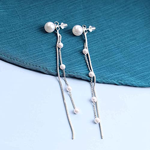 Yheakne Boho Orecchino a catena di perle Orecchini in argento con nappe e nappe Orecchini pendenti lunghi Gioielli per donne e ragazze