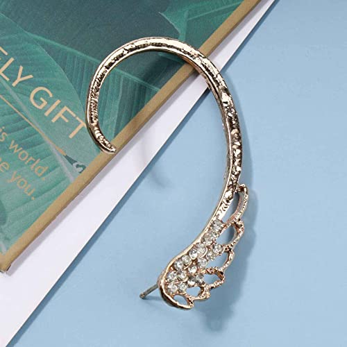 Yheakne Boho Strass Orecchini con ala d'angelo Climber Orecchini in oro Cz Crystal Ear Crawler Orecchini ala Ear Cuff Orecchini avvolgenti Cartilagine Clip su orecchini Gioielli per donne e ragazze