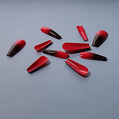 Unghie a ballerina a pressione, colore: rosso e nero, 24 pezzi, applicazione duratura e facili da abbinare.