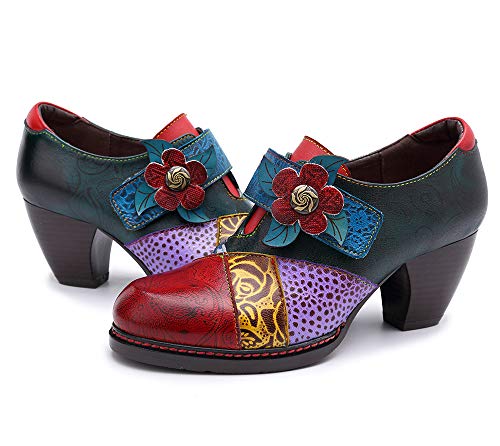 ★ La tomaia di questa scarpa a tacco basso è realizzata con cuciture in pelle di vacchetta multicolore, che è alla moda e accattivante.
