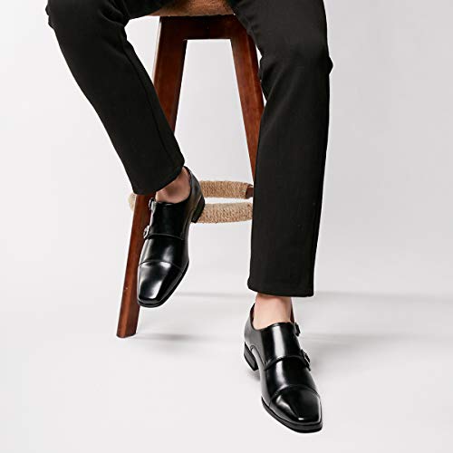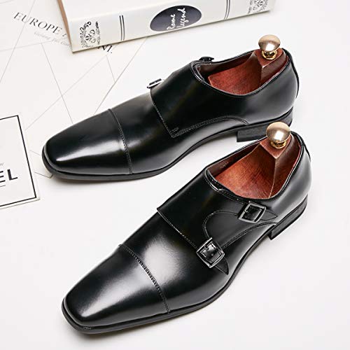 Yhjmdp Uomini Scarpe in Pelle Elegante Classico Comodo Respirabile degli Uomini di Modo Scarpe Casual Doppia Fibbia Pattini di Cuoio genuini Scarpe,Nero,43