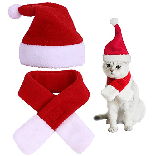 YHNMMNO Cappello Da Babbo Natale Per Cani Gatti Sciarpa E Cappello Natalizio Animali Domestici Set Costume Natalizio Per Animali Sciarpa Natalizia Rossa Per Animali Domestici