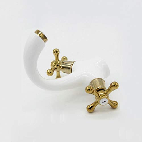 YHSGY Rubinetti Per Lavandini Bagno Rubinetto Per Lavabo Doppio Manico Bianco Laccato Interamente In Rame Con Rubinetto Per Acqua Calda E Fredda Con Rubinetto Per Lavabo In Oro Bianco Monoforo