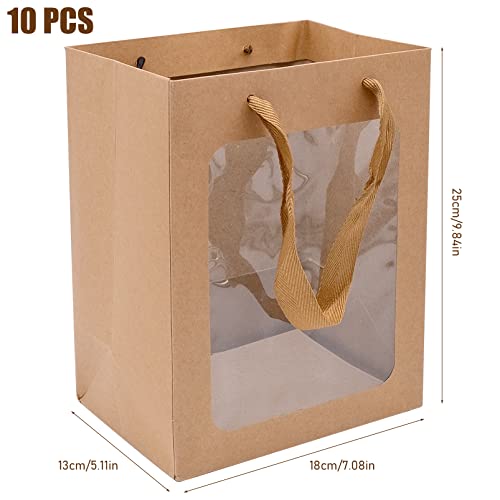 YHSKJCD 10 Pezzi Sacchetti di Carta Marrone, Sacchetti di Carta Kraft con Finestra, Sacchetto Regalo con Manici Sacchetto con Finestra Trasparente per Cottura, Feste di Compleanno, Regali, Shopping