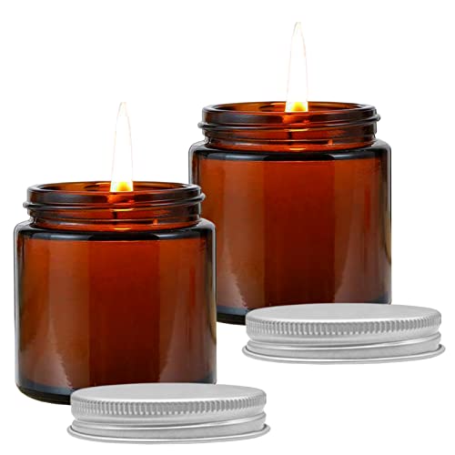 YHSWIN 2 Pezzi Barattolini Vetro per Candele, 100ml Ambra Vasetti Vetro per Candele con Coperchio, per Essere Usato per Riempire Candele Profumate Fatte in Casa e Cosmetici (Non Contiene Candele)