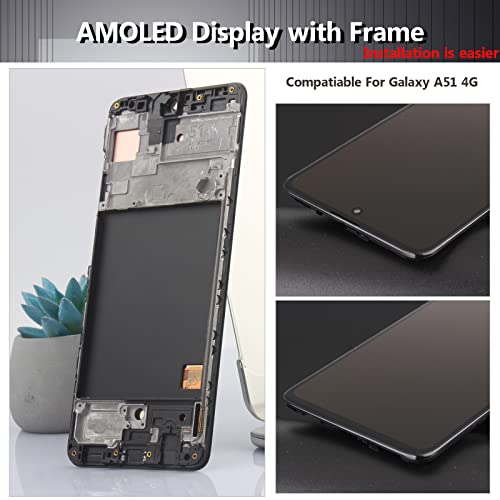 YHX-OU Display AMOLED da 6,50" con cornice per Samsung Galaxy A51 SM-A515F SM-A515F/DSN, schermo LCD di ricambio con strumento + pellicola protettiva