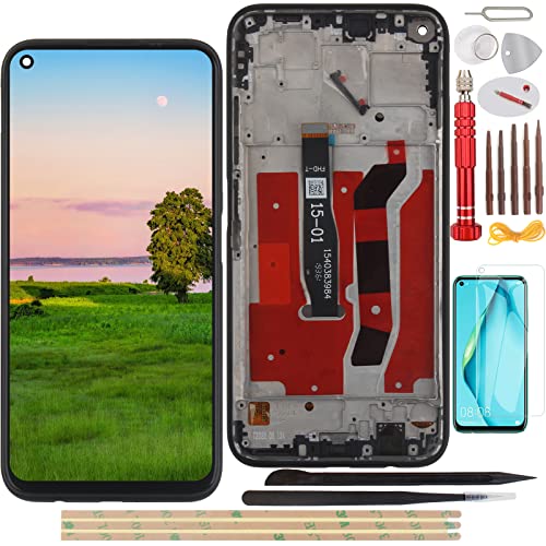 YHX-OU - Schermo LCD da 6,4" per Huawei P40 Lite, Kit di digitalizzatore Touch Screen con Strumento di Installazione + 1 Pezzo in Vetro temperato (Nero + Cornice)
