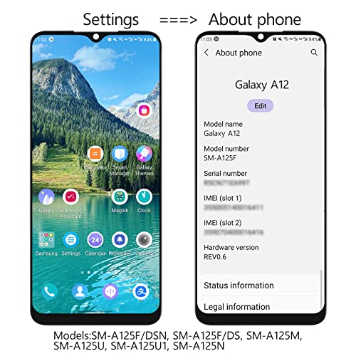 【Sostituzione schermo】: Compatibile con Per Samsung Galaxy A12 SM-A125F/DSN, SM-A125F/DS, SM-A125F, SM-A125M, SM-A125U, SM-A125U1, SM-A125N, SM-A125W Sostituzione schermo LCD Nero con cornice .Non Per A127F. Si prega di controllare la versione del telefono prima dell'acquisto.
