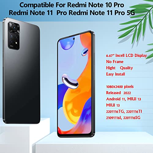 YHX-OU Nero TFT Schermo per Xiaomi Redmi Note 10 PRO Redmi Note 11 PRO/per Redmi Note 11 PRO 5G LCD Display Touch Screen Digitizer Ricambio Assembly con Utensili Inclusi