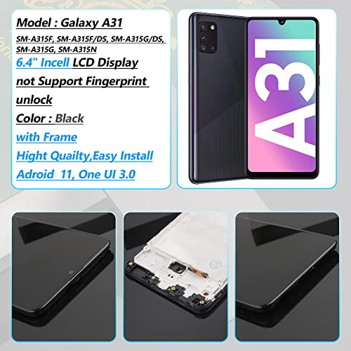YHX-OU 6.4'' Nero+Telaio Incell Schermo per Samsung Galaxy A31 SM-A315F SM-A315G LCD Schermo LCD Display Touch Screen Digitizer Ricambio Assembly con Utensili Inclusi E Vetro temperato