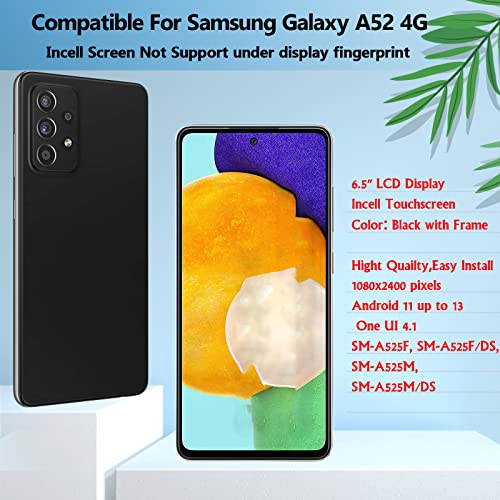 YHX-OU 6.5'' Nero con Telaio Incell Schermo per Samsung Galaxy A52 4G SM-A525F SM-A525M LCD Display Touch Screen Digitizer Ricambio Assembly con Utensili Inclusi+Vetro temperato