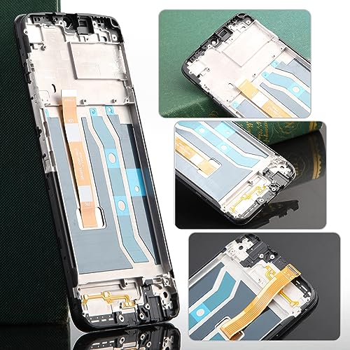 YHX-OU 6.5'' Nero+Telaio Schermo Completo per Realme C25Y RMX3265 RMX3268 RMX3269 LCD Display Touch Screen Digitizer Ricambio Assembly con Strumento di Installazione + 1 Pezzo Vetro temperato