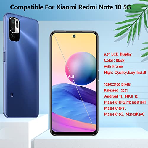 YHX-OU Nero with Telaio Schermo per Xiaomi Redmi Note 10 5G LCD Display Touch Screen Digitizer Ricambio Assembly con Strumento di Installazione + per Redmi Note 10 5G Vetro temperato
