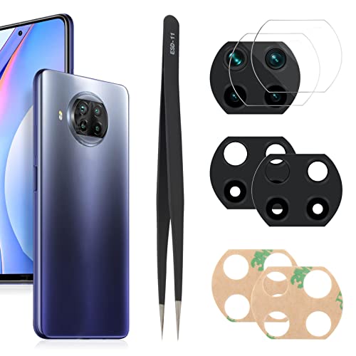 YHX-OU 6.67'' per Xiaomi Mi 10T Lite 5G Lente Vetro Camera Posteriore [2 Pezzi] con pinzette + [2 Pezzi] Camera Vetro temperato (Nero)