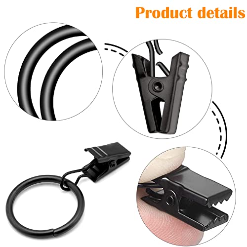 YHZMY 20 Pezzi Gancio per Tende, Anelli per Tende con Clip, Anelli Tende, Multiuso, per Tenda, per Asta Tenda, Anello per Tenda con Clip, Metallo Antiruggine, Facile Aperto e Vicino, Colore Nero
