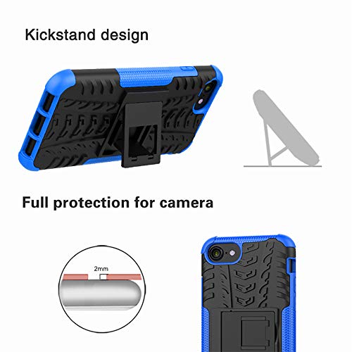 Yiakeng Cover iPhone SE 2020/iPhone 7/8 + Proteggi Schermo, Antiurto Protezione Silicone con Kickstand Rugged Custodia Case per iPhone SE 2020/iPhone 7/8-4.7" (Blu)