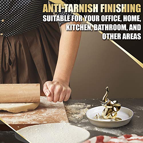 FINITURA ELEGANTE: il nostro vassoio di supporto per gioielli in porcellana bianca con un bordo dorato è realizzato a mano. Il nostro appendiabiti è una scultura di elefante che è meticolosamente lucidata.