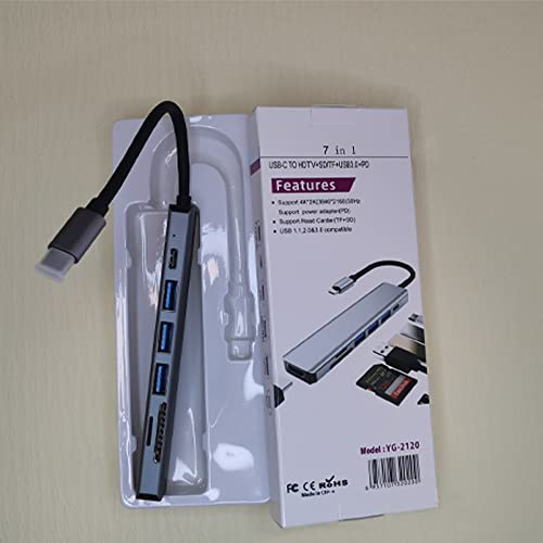 Hub USB C, Yibakaa 7 in 1 Multiporta Adattatore da USB C, 4K HDMI, 100W PD, SD/TF, 1*USB 3.0, 2*USB 2.0, Compatible con Mac OS, Android