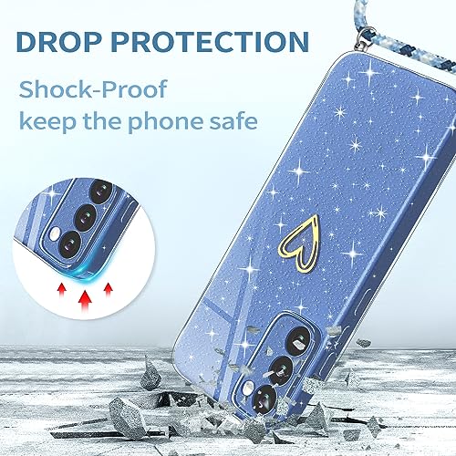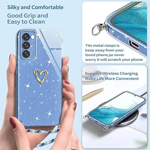 Yichxu Cover con Cordino per Samsung Galaxy S22 5G, Custodia Glitter con Collana Tracolla, Motivo Cuore TPU Silicone Brillantini Antiurto AntiGraffio Case, Laccio Collo Case per samsung S22 5G, Blu
