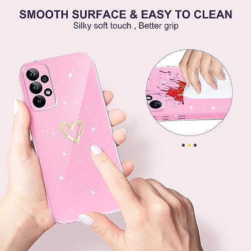 Yichxu Cover per Samsung Galaxy A13 4G Custodia Glitter TPU Silicone Brillantini con Protezione Fotocamera Motivo Cuore Sottile Morbid Antiurto Paraurti Case Protettiva, Rosa