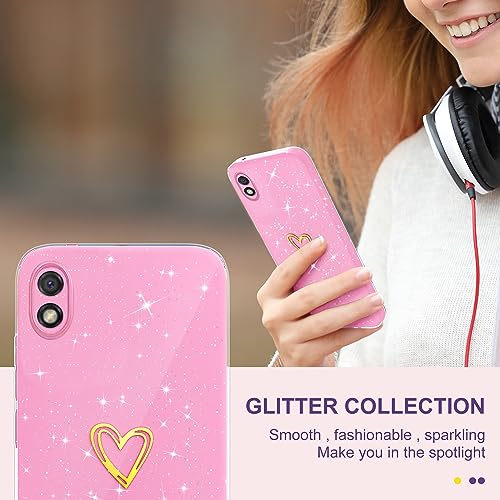 Yichxu Cover per Xiaomi Redmi 9A Custodia Glitter TPU Silicone Brillantini Motivo Cuore Sottile Morbid Antiurto Paraurti Protettiva Case per Xiaomi Redmi 9A (6.53"), Rosa