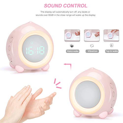 Yidenguk Sveglia Digitale Pesca Carina, Sveglia per Bambini a LED Sveglia da Comodino con Luce Notturna Ricaricabile USB Controllo vocale Sveglia e Luce, Regalo Perfetto per Ragazze e Ragazzi, Rosa