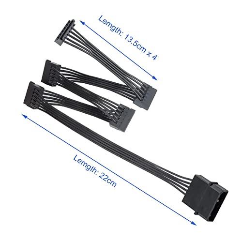 Cavo splitter da 4 pin IDE a 5 x 15 pin: converte un connettore Molex a 4 pin in 5 prese SATA da 15 pin per aggiornare il tuo PC per hard disk SATA/unità ottiche (hard disk, DVD-ROMs) o dispositivi (schede grafiche, ventole, ecc.)