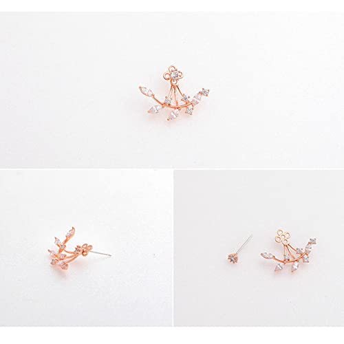 Yienate Ashion Orecchini In Foglia D'oro Rosa Orecchini A Perno Orecchini In Foglia Di Strass Orecchini A Goccia In Foglia Di Zircone Posteriori Per Donna E Ragazza
