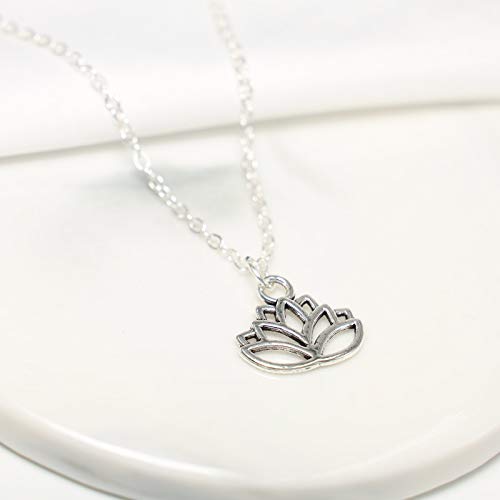 Yienate - Collana alla moda con ciondolo a forma di fiore di loto e anemone, per donne e ragazze (argento)