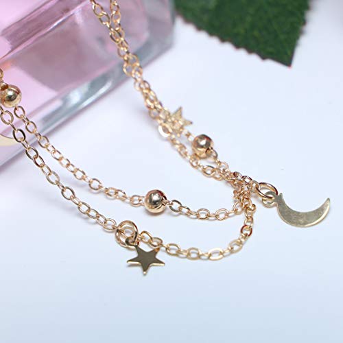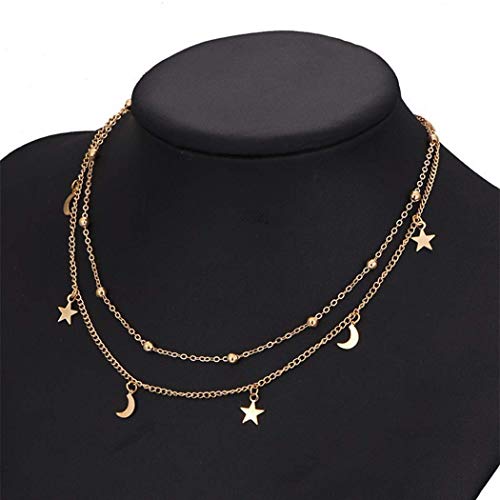 Yienate - Collana da donna con ciondolo a forma di luna e stella, a doppio strato, colore: Oro