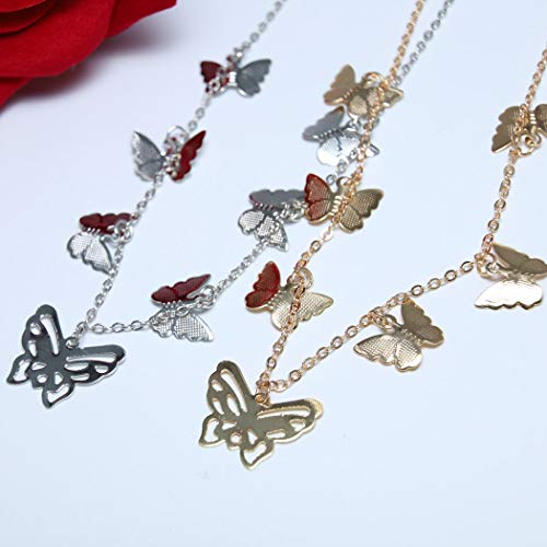 Yienate - Collana da donna con 7 farfalle e ciondolo a forma di clavicola per ragazze, colore: argento