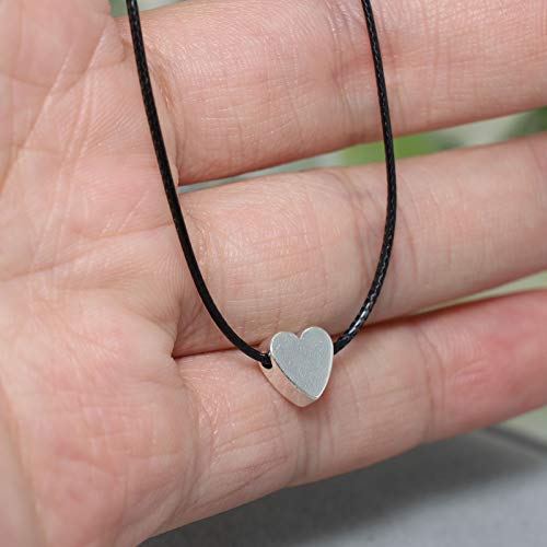 Yienate Collana girocollo con ciondolo a forma di cuore in argento, con ciondolo a forma di cuore piccolo, in pelle, per donne e ragazze