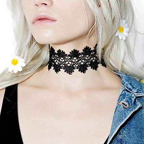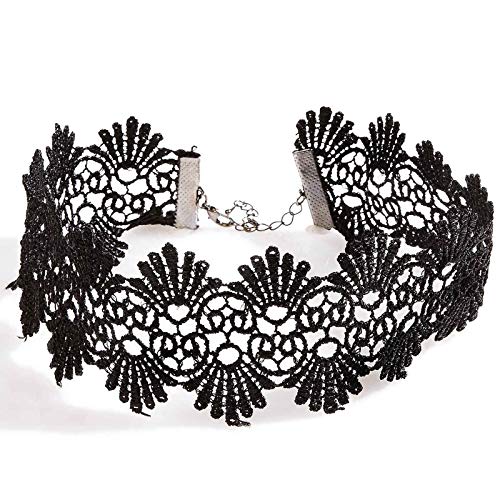 Yienate Collana girocollo in pizzo Collana a forma di capesante cava con tatuaggio elasticizzato Collana in pizzo elastico Accessori di gioielli di moda per donne e ragazze (nero)