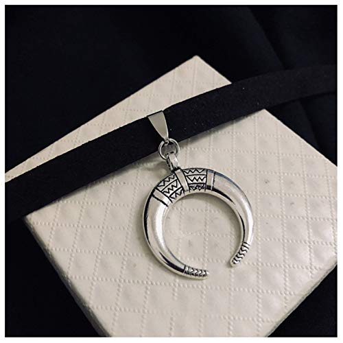Yienate Collana girocollo vintage a forma di luna crescente, in velluto, con ciondolo a forma di corno di luna, gioiello per donne e ragazze