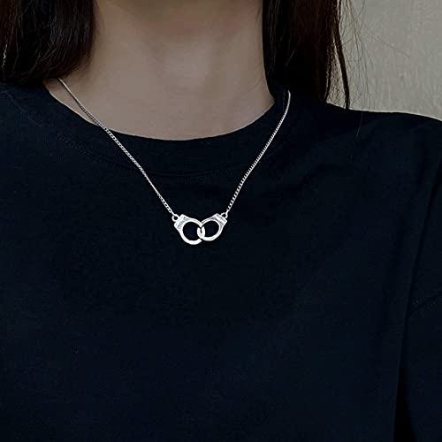 Yienate Collana con manette in argento stile hip hop, con ciondolo a forma di manette, per donne e ragazze
