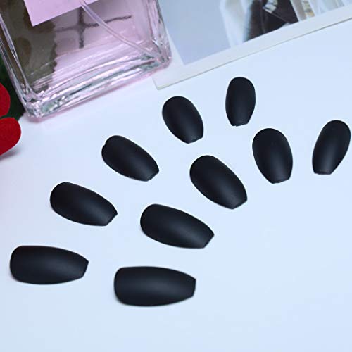 Yienate, unghie finte nere satinate a testa quadrata, per donne e ragazze, 24 pezzi