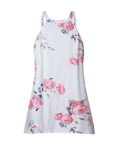 Yieune Canotta estiva da donna ricamata, senza maniche, con motivo floreale, colore blu