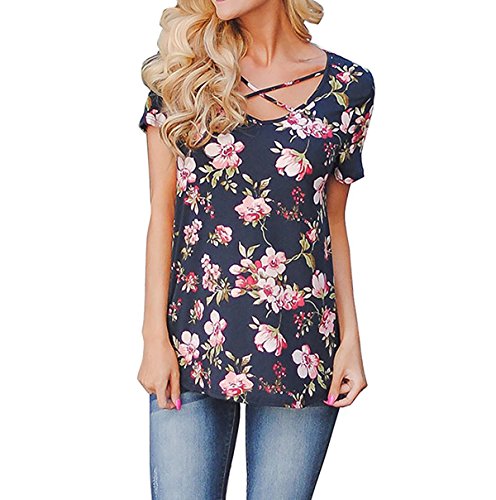 Yieune - T-shirt - Collo a V - Maniche corte - Donna